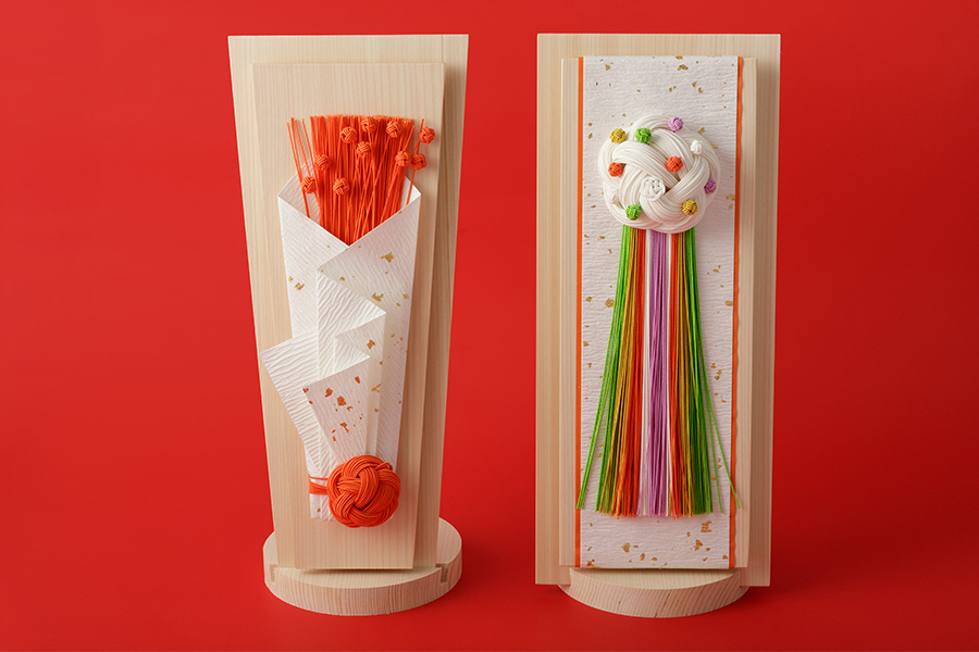 今年は、山梨県市川三郷町の書院紙の最高級を示す大直紙を屋号に暮らしに息づく和紙と製品を作り、古来より変わらぬ四季折々の行事、慶びの風景を描いてきた「大直」より、伝統的なものからモダンなお正月飾りや水引、取り揃えました。