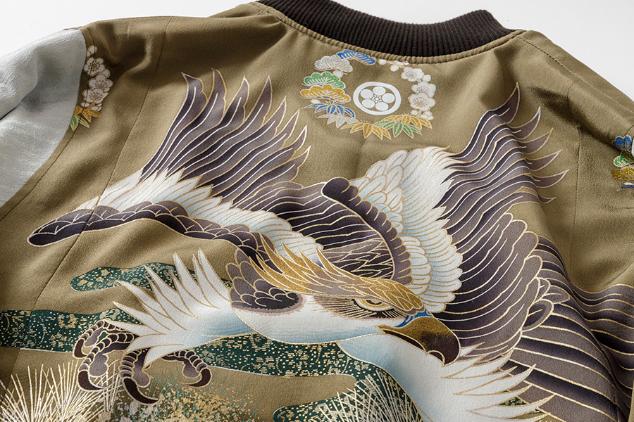 スカジャンは現在もクールな和風ジャケットとして海外のファッショニスタたちか愛されており、そのスカジャンに着物の意匠を大胆かつ晴れやかに取り入れ、「HAREJAN」として生まれ変わりました。