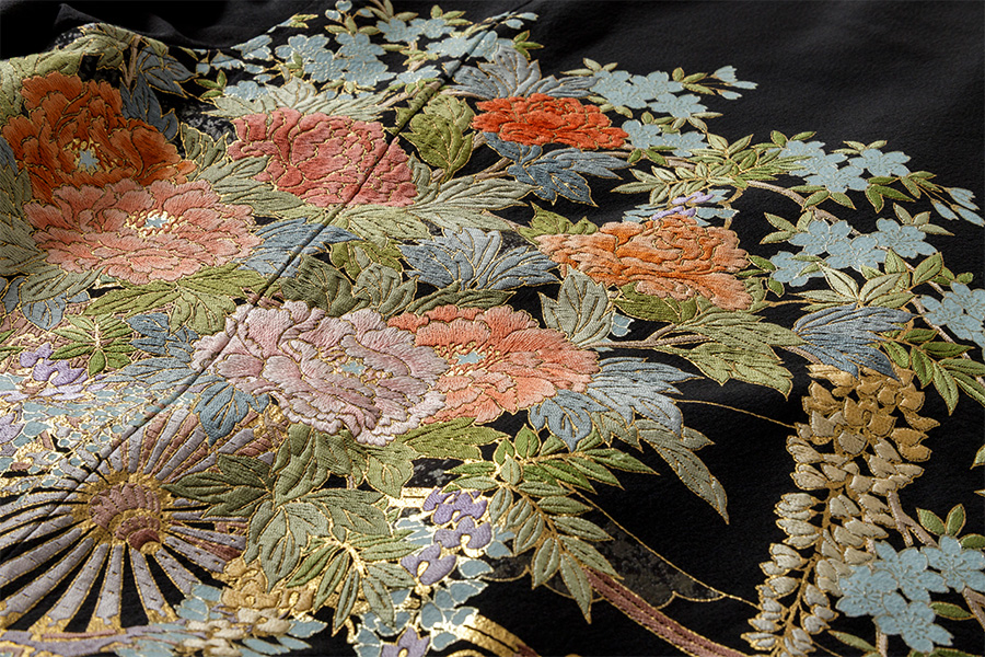 総刺繍を施した黒留袖を背中全面に配置した『HAREJAN』。