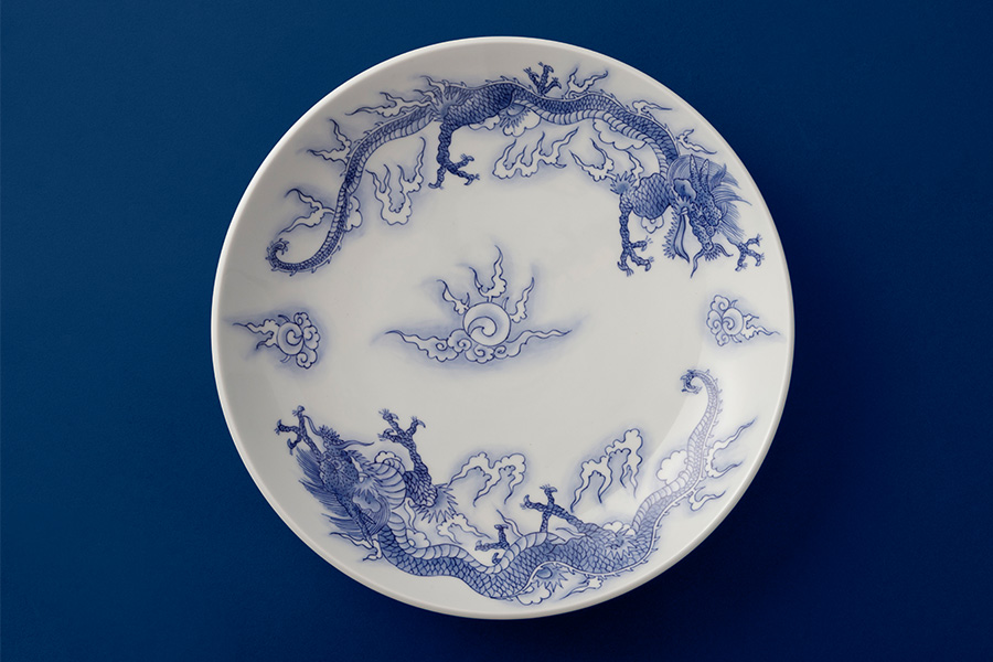 邪気を払い、成功と飛躍、豊穣や財運の象徴とされている縁起の良い「龍」をダイナミックに描いた大皿。一年の始まりに相応しい逸品。