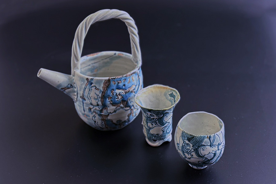 ひとつひとつ手で形取っていくところから作られた、さまざまな形と絵柄の酒器が揃います。磁器にコレクションしたくなる愛着ある猪口は、土ものの温かみや味わいを取り入れ、絵付けで様々な表情をつけている人気作のひとつ。