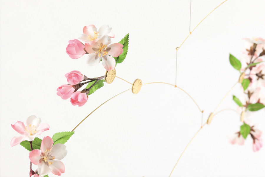 染色、切り出し、組み上げに至るその全ての工程は一貫して手作業にこだわり、”さりげなく良いものを”を制作の上でのモットーとしています。その造形美もさることながら、花びらや葉の絶妙な色合いは、古来より桜を愛でる日本人の目で判断しているからこそ出せる風合いです。