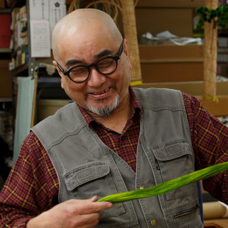 岡田雄二は三代目として日本人形用造花、寺社、祭祀用造花を製作しています。現在は主に雛人形用桜橘、紅白梅、菖蒲を製造し、古来より続く慣習や伝統行事が少なくなっている昨今、異業種とも関わり合いながらメイドインニッポンの職人技を駆使し、次世代への展開を見つめ製作しています。